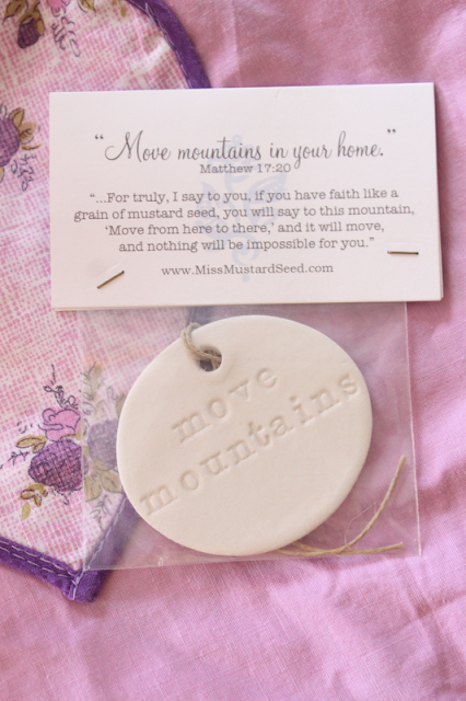 And last but certainly not least, Miss Mustard Seed gave out these lovely “move mountains” tags.